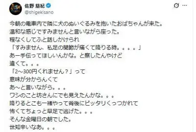 元投手佐野慈紀氏(57)電車内で話しかけてきた女性に困惑「『足の関節が痛くて…2~300円くれません?』と。怖くて逃げた」