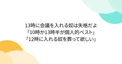 13時に会議を入れる奴は失格だよ「10時か13時半が個人的ベスト」「12時に入れる奴を葬って欲しい」