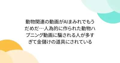 動物関連の動画がAIまみれでもうだめだ…人為的に作られた動物ハプニング動画に騙される人が多すぎて金儲けの道具にされている