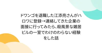 ドワンゴを退職した江添亮さんがハロワに登録→連絡してきた企業の面接に行ってみたら、殺風景な雑居ビルの一室でわけのわらない経験をした話