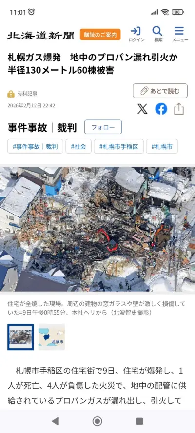 【悲報】札幌の民家火災爆発事故、爆発の原因は地中に埋まったプロパンガス管からのガス漏れ