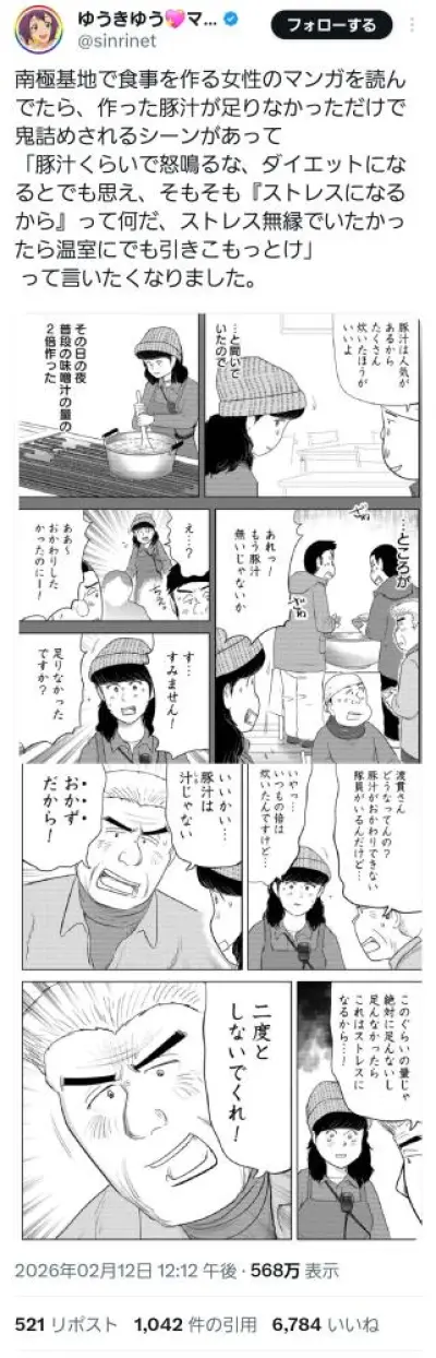 【炎上】この漫画の南極隊員、女性へのモラハラが酷すぎて炎上する