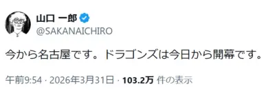 【悲報】山口一郎さん今日中日の試合に出没wwwwwwww