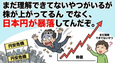 まだ理解できてないやつがいるが株が上がってるんでなく、日本円が暴落してんだぞ。