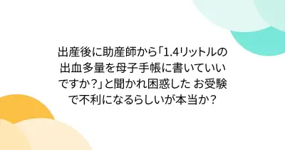 出産後に助産師から「1.4リットルの出血多量を母子手帳に書いていいですか?」と聞かれ困惑した お受験で不利になるらしいが本当か?