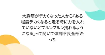 大胸筋がデカくなった人から『ある程度デカくなると走る時に力を入れていないとプルンプルン揺れるようになる』って聞いて体調不良全部治った