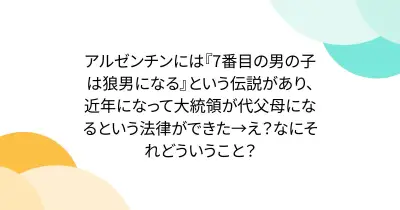 アルゼンチンには『7番目の男の子は狼男になる』という伝説があり、近年になって大統領が代父母になるという法律ができた→え?なにそれどういうこと?
