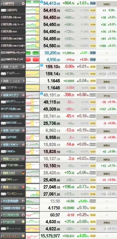 【相場】日経平均、5万4000円台 ドル円も159円 金も強い 仮想通貨も上昇
