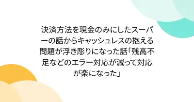 決済方法を現金のみにしたスーパーの話からキャッシュレスの抱える問題が浮き彫りになった話「残高不足などのエラー対応が減って対応が楽になった」