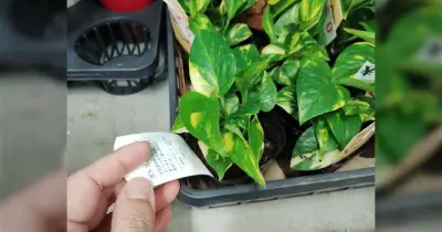 店で売られている姿とは違い沖縄で地植えになった瞬間すごいことになるポトスがこちら「え!? 違う葉っぱじゃなくて?」