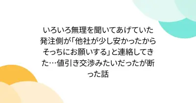 いろいろ無理を聞いてあげていた発注側が「他社が少し安かったからそっちにお願いする」と連絡してきた…値引き交渉みたいだったが断った話