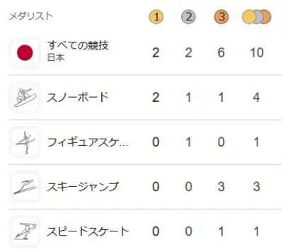 金2 銀2 銅6 ←これ