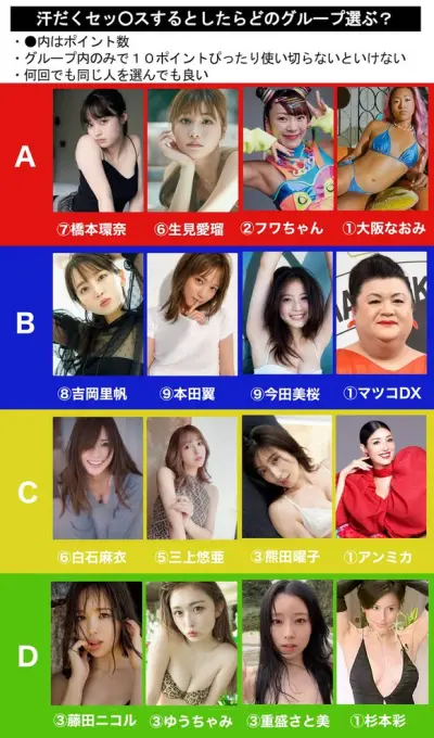 【最新】汗だくセ〇クスするなら、どの人選ぶ?