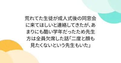 荒れてた生徒が成人式後の同窓会に来てほしいと連絡してきたが、あまりにも酷い学年だったため先生方は全員欠席した話「二度と顔も見たくないという先生もいた」