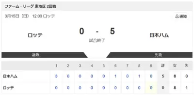 【vs.ロッテ 東地区】0-5で勝利!