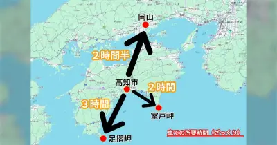 他県民が知らない高知県、高知市からはどこへ行くにも時間がかかるらしい→高速道路もないので下道で行くしかないし、足摺岬はいつまで経っても着かない
