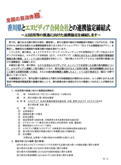 うどん県で水不足県の香川、時価総額世界1位のNVIDIAとまさかのコラボ