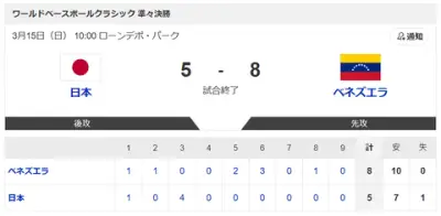 【日本vs.ベネゼエラ】5-8で侍ジャパン負け
