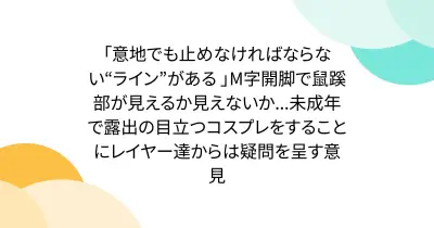 「意地でも止めなければならない“ライン”がある 」M字開脚で鼠蹊部が見えるか見えないか...未成年で露出の目立つコスプレをすることにレイヤー達からは疑問を呈す意見