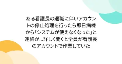 ある看護長の退職に伴いアカウントの停止処理を行ったら即日病棟から「システムが使えなくなった」と連絡が...詳しく聞くと全員が看護長のアカウントで作業していた