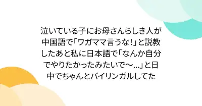 泣いている子にお母さんらしき人が中国語で「ワガママ言うな!」と説教したあと私に日本語で「なんか自分でやりたかったみたいで~...」と日中でちゃんとバイリンガルしてた