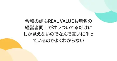 令和の虎もREAL VALUEも無名の経営者同士がオラついてるだけにしか見えないのでなんで互いに争っているのかよくわからない