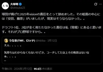 元ロッテ大塚コーチ「ドラフト1位、2位が全く育たたなかった責任は私(現場)にあると思います」