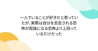 一人でいることが好きだと思っていたが、実際は自分を否定される恐怖が孤独になる恐怖より上回っているだけだった