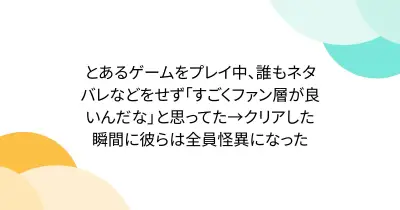 とあるゲームをプレイ中、誰もネタバレなどをせず「すごくファン層が良いんだな」と思ってた→クリアした瞬間に彼らは全員怪異になった