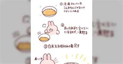 冷凍チャーハン、あっためると1/3くらいになる→まさかの追いご飯でいい塩梅チャーハンが出来上がり 冷凍チャーハンへ更に米を足して炒めるやり方も