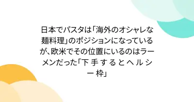 日本でパスタは「海外のオシャレな麺料理」のポジションになっているが、欧米でその位置にいるのはラーメンだった「下 手 す る と ヘ ル シ ー 枠」