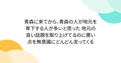 青森に来てから、青森の人が地元を卑下する人が多いと思った 地元の良い話題を取り上げてるのに悪い点を無意識にどんどん言ってくる