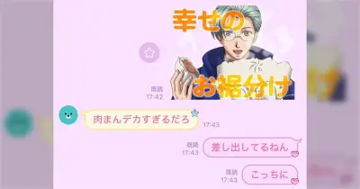 こちらに肉まんを差し出している「ときメモ」のLINEスタンプ 遠近法を利用して描かれているものの、距離が近すぎる、肉まんがデカいと爆笑の議論が勃発