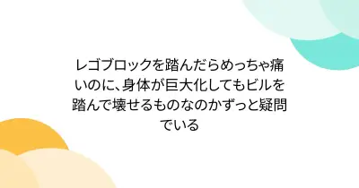 レゴブロックを踏んだらめっちゃ痛いのに、身体が巨大化してもビルを踏んで壊せるものなのかずっと疑問でいる