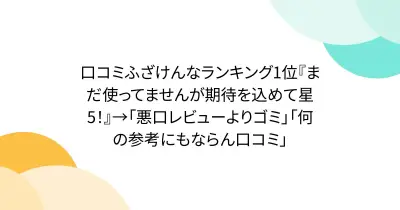 口コミふざけんなランキング1位『まだ使ってませんが期待を込めて星5!』→「悪口レビューよりゴミ」「何の参考にもならん口コミ」