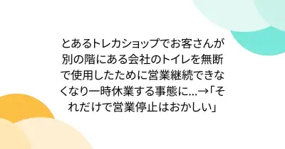 とあるトレカショップでお客さんが別の階にある会社のトイレを無断で使用したために営業継続できなくなり一時休業する事態に...→「それだけで営業停止はおかしい」