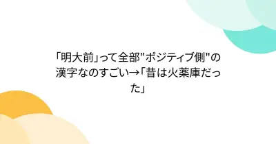 「明大前」って全部"ポジティブ側"の漢字なのすごい→「昔は火薬庫だった」