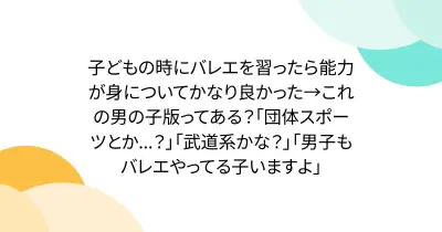 子どもの時にバレエを習ったら能力が身についてかなり良かった→これの男の子版ってある?「団体スポーツとか...?」「武道系かな?」「男子もバレエやってる子いますよ」