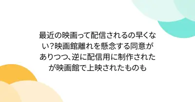 最近の映画って配信されるの早くない?映画館離れを懸念する同意がありつつ、逆に配信用に制作されたが映画館で上映されたものも