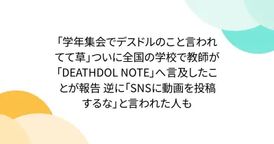 「学年集会でデスドルのこと言われてて草」ついに全国の学校で教師が「DEATHDOL NOTE」へ言及したことが報告 逆に「SNSに動画を投稿するな」と言われた人も