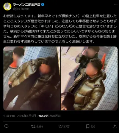 ラーメン二郎亀戸駅店、お客様にお気持ち表明