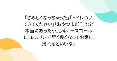 「さみしくなっちゃった」「トイレついてきてください」「おやつまだ?」など本当にあった小児科ナースコールにほっこり…「早く良くなってお家に帰れるといいな」
