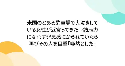 米国のとある駐車場で大泣きしている女性が近寄ってきた→結局力になれず罪悪感にかられていたら再びその人を目撃「唖然とした」