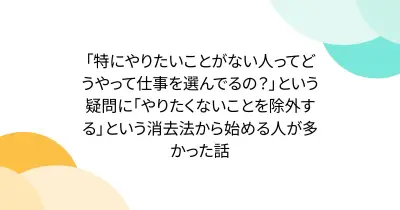 「特にやりたいことがない人ってどうやって仕事を選んでるの?」という疑問に「やりたくないことを除外する」という消去法から始める人が多かった話