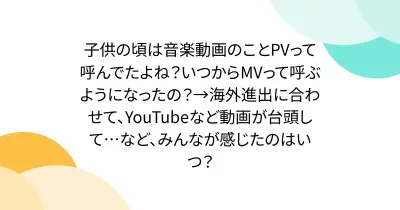 子供の頃は音楽動画のことPVって呼んでたよね?いつからMVって呼ぶようになったの?→海外進出に合わせて、YouTubeなど動画が台頭して…など、みんなが感じたのはいつ?