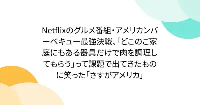 Netflixのグルメ番組・アメリカンバーベキュー最強決戦、「どこのご家庭にもある器具だけで肉を調理してもらう」って課題で出てきたものに笑った「さすがアメリカ」