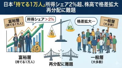株価上昇の影響で格差が拡大。まじめに働いていても投資してなけりゃ貧乏人になる時代へ