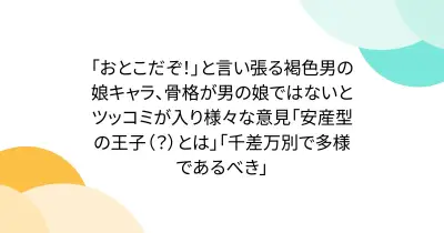 「おとこだぞ!」と言い張る褐色男の娘キャラ、骨格が男の娘ではないとツッコミが入り様々な意見「安産型の王子(?)とは」「千差万別で多様であるべき」