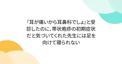 『耳が痛いから耳鼻科でしょ』と受診したのに、帯状疱疹の初期症状だと気づいてくれた先生には足を向けて寝られない