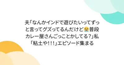 夫「なんかインドで遊びたいってずっと言ってグズってるんだけど😭普段カレー屋さんごっことかしてる?」私「粘土や!!!」エピソード集まる